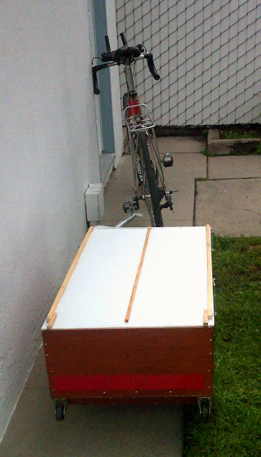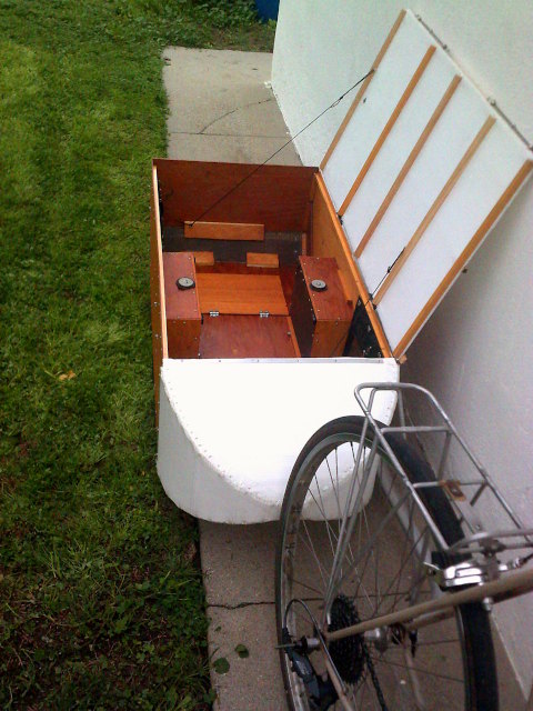 That's the trailer, hitched up to my old errand bike (which I call my "junker"). (There are lots more pictures below.) Since