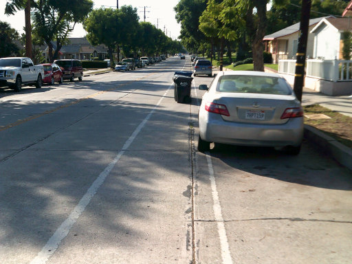 Then we have this kind of thing on trash day, where people put their containers in the lane: