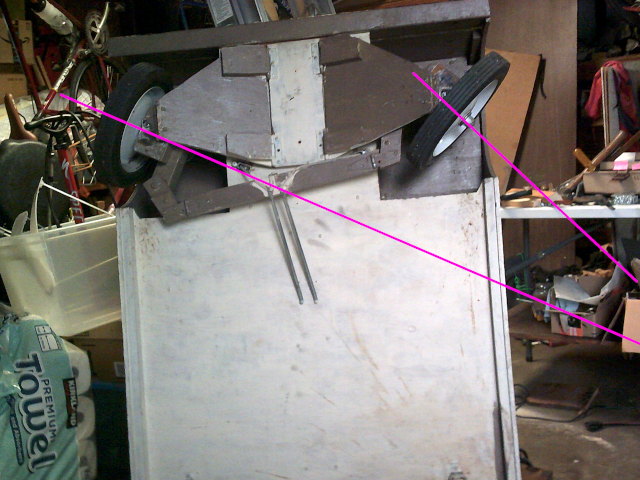 circle. The bright purple lines are drawn by hand, approximately the direction the axles point: