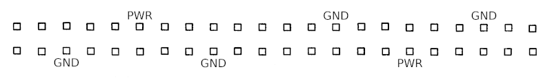 These don't have any plane (and from the oscilloscope displays of waveforms with lots of ringing, the larger, faster board above could sure use one), but it would be all the better if you have at least a ground plane, which you can get inexpensively with protoboard like Twin Industries' 8100-series boards (see this page and click on "8100 Series Plated Through Holes - Single Power/Ground Plane," if not also a Vcc (or VDD—same thing) plane (ie, a power plane) which you can get inexpensively with their 8200-series boards (see the same page, and click on "8200 Series Plated Through Holes - Dual Power/Ground Plane"), shown here: