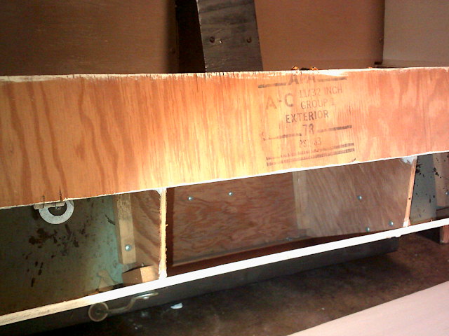 workbenches and projects in progress.) The white rectangle in the center is a piece of wood that's thinner at the front than